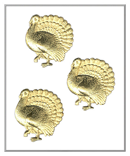 Gobble gobble gobble, Thanksgiving is the time for turkey! Made of embossed gold foil-covered cardboard, these tom turkey Dresdens are elegant to use on place cards for the dinner table, and as accents on Thanksgiving party favors. Our import from Germany.