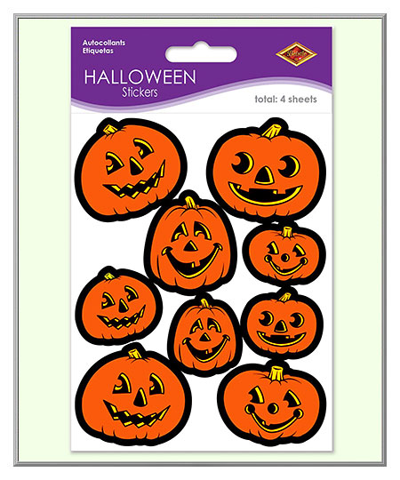 Cheerful pumpkins that aren't too scary for the little ones! These bright orange stickers are nifty to use on goody bags, party invitations, place settings and for crafting fun Halloween ornaments, too. The self-adhesive stickers are made in the U.S.A.