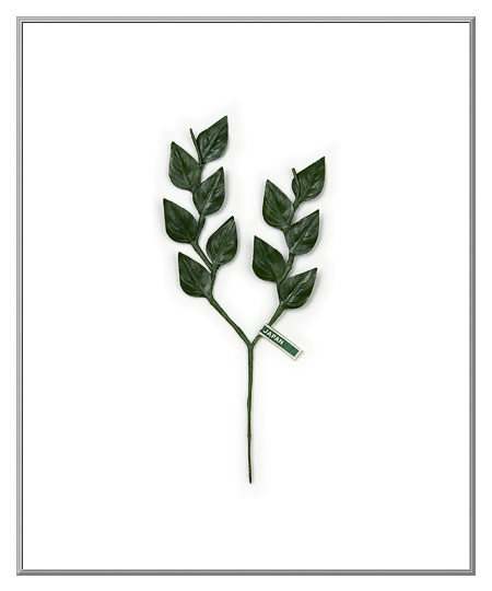 These little paper leaves are so handy for when you need just a few accent leaves for a craft or decorating project. The spray can be used as is, or pulled apart into individual leaves, as each leaf in the sprig has its own wire stem. Glossy green paper leaves have finely embossed leaf veins. Sprig still has the original "Made in Japan" tag.