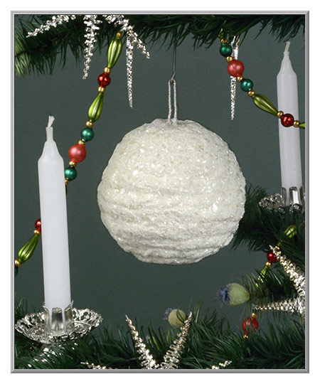 Our sparkly, life-size snowball is such a fun decoration on the Christmas tree, or to use in a festive holiday display. Made especially for us in Germany in the mid-1990's, this original old stock ornament was crafted of authentic spun cotton 'Watte' and then glimmered with mica flake sparkles in the traditional fashion. Exclusively ours.