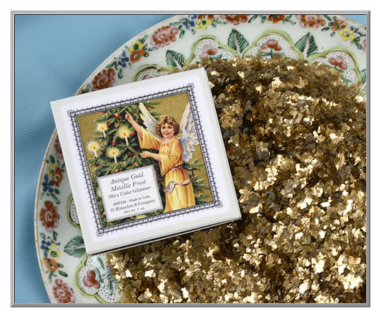 Just about any style of adhesive can be used with mica sparkles, but do note that the type of glue will affect the final color and shine of the flakes. A white glue that dries clear is the best choice for maximum brilliance, while hide glue has an amber-toned hue that adds an aged, antique look to the flakes.