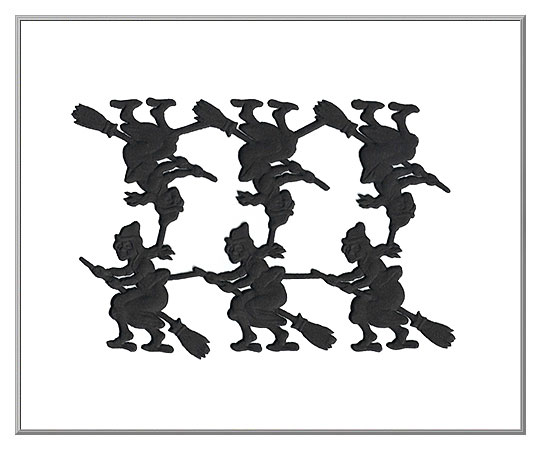 Zooming along on her own broomstick, this wicked witch is a scarily fun trim for all types of Halloween crafting. Made of die-cut, embossed matte black paper, it's our own import from Germany.