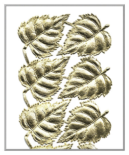 A scatter of leaves that you can use all year round, these Dresden leaves are especially nice for Fall crafting projects. Made of die-cut, embossed paper with gold foil on the front and white paper on the back. Ours from Germany.
