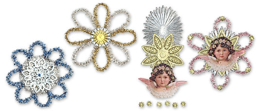 to create your own imaginative, fanciful tinsel ornaments.
