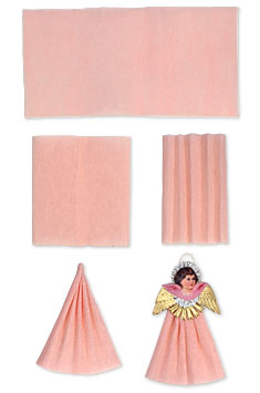 Spun glass is not a product that is suitable for young children. If you want to craft these angel ornaments with your little ones, the instructions shown at left for making the crepe paper skirts are easy enough for any skill level.