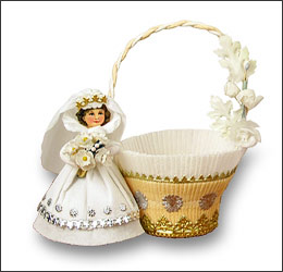 cornucopia for her to hold. Trim the favor basket,