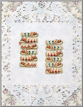 Smiling, sleeping and crying Victorian baby boys and girls are wrapped tight in their cozy buntings! Antique die-cuts that date to the turn-of-the-last-century, they are still in mint, like-new condition. Made by Littauer & Boysen more than 100 years ago, the embossed die-cuts were printed on standard-weight paper and have a semi-gloss finish. Original full sheet is marked with "L & B" and "Printed in Germany" along with the item number "2643."