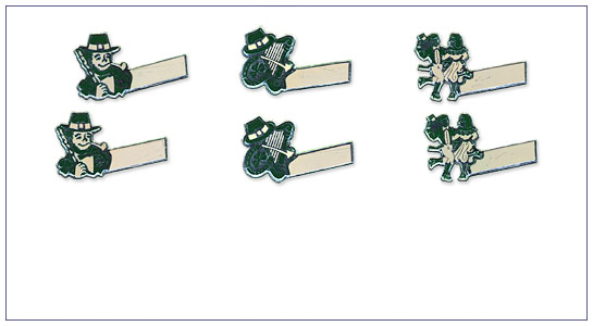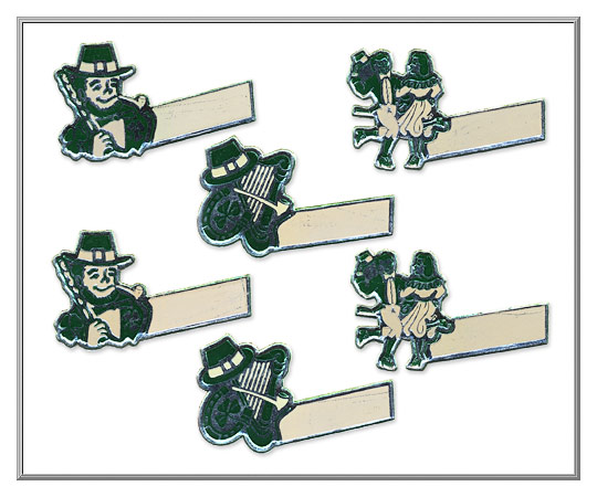 More treasures from our archives! Why not craft some special decorations for a festive St. Patrick's Day celebration with these old stock die-cuts. Made from an embossed foil-faced cardboard, these novelty name cards were manufactured in the USA about sixty-five years ago. All of these charming mid-century foil die-cuts are still in unused condition.