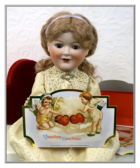 A novel gift bag that also doubles as a Valentine card! Featuring an adorable, vintage image of two cute cherubs, the sturdy cardboard die-cut has a gift bag on the back. A nice way to gift a loved one with special treats, the decoration can be displayed for years to come. Printed in full color with embossed gold accenting.