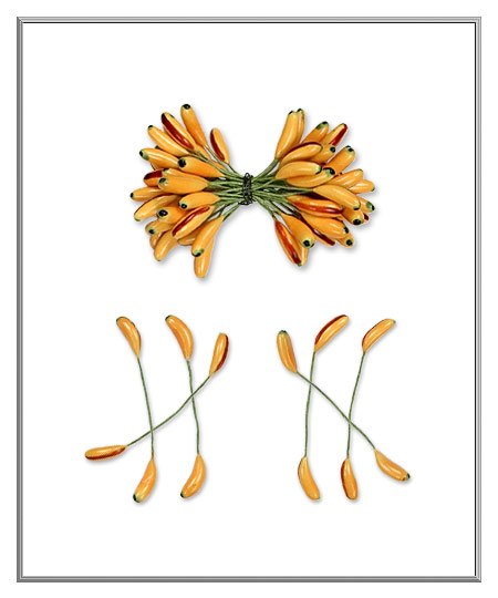 Yes, we have some bananas! Luscious little fruits from the past, the bananas were painted by hand with fine detailing to look like tree-ripened bananas. Each fruit is made from molded composition with glossy yellow lacquer finish. Stems are made of green wire. Old stock that are in like-new condition, the bananas are almost 75 years old.